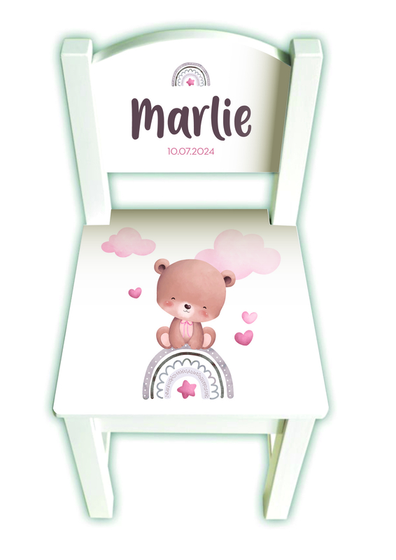 Artikelnummer: S040 OverzichtGeboortestoeltje met naam | beertje op regenboog
