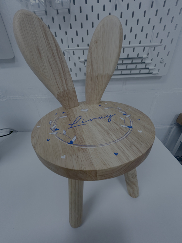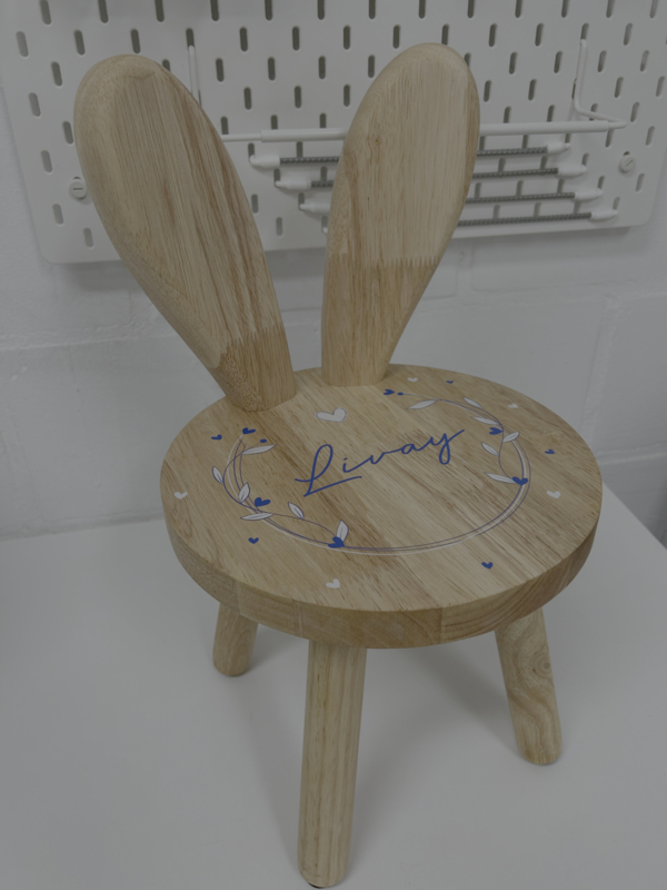 Dit geboortestoeltje word bedrukt in de printer, dus niet met een sticker zoals bij de meeste andere webshops. Dit geeft een mooie, luxe uitstraling aan het stoeltje. In tegenstelling tot stoeltjes met een sticker wordt van dit houten stoeltje met naam de gehele zitting en rug bedrukt (indien het ontwerp het gehele zitvlak bedekt). De bedrukking is kras- en kleurvast, en het geboortestoeltje is gemakkelijk schoon te maken met een vochtige doek.