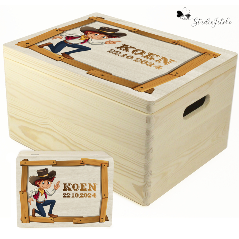 Houten geboorte bewaardoos | cowboy