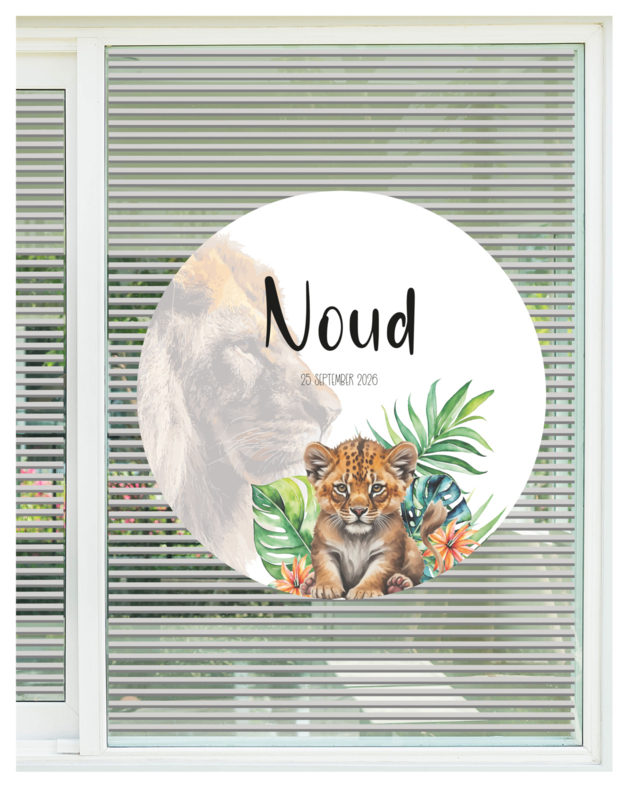 Artikelnummer: D136 OverzichtGeboorte bewaardoos | leeuw 136 met baby leeuw en onscherp het profiel van een mama leeuw