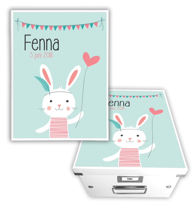 Artikelnummer: Dk061 OverzichtGeboorte bewaardoos met naam | Konijntje met hartjesballon