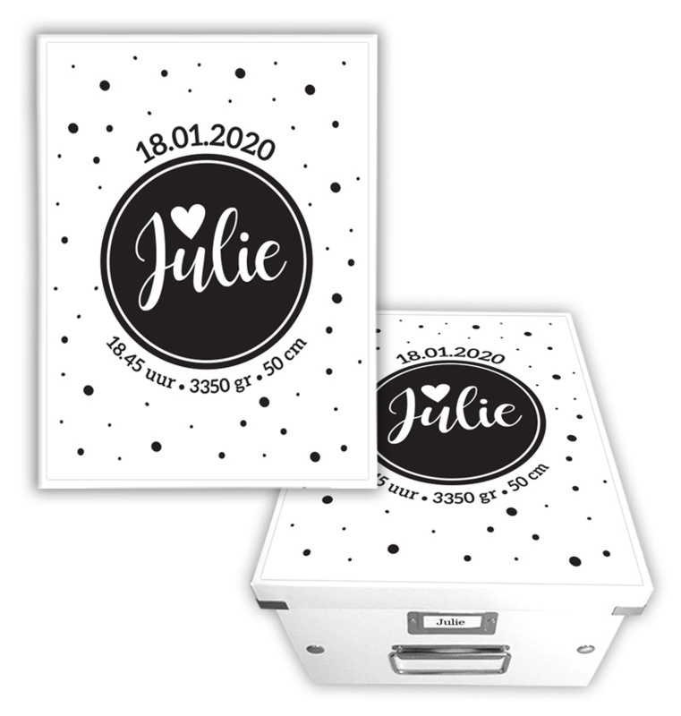 Ontzettend leuke geboorte herinneringendoos om de mooiste en allereerste herinneringen van het kindje in te bewaren zoals bijvoorbeeld: felicitatiekaarten voor de geboorte, de navelstrengklem, echo- en andere foto`s, speentje, eerste schoentjes, eerste mutsje etc. Een zeer dankbaar en duurzaam cadeau dat leuk is om te bewaren en later mee te geven aan het volwassen kind, ter herinnering aan alles rondom zijn/haar geboorte.