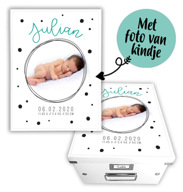 Ontzettend leuke geboorte herinneringendoos om de mooiste en allereerste herinneringen van het kindje in te bewaren zoals bijvoorbeeld: felicitatiekaarten voor de geboorte, de navelstrengklem, echo- en andere foto`s, speentje, eerste schoentjes, eerste mutsje etc. Een zeer dankbaar en duurzaam cadeau dat leuk is om te bewaren en later mee te geven aan het volwassen kind, ter herinnering aan alles rondom zijn/haar geboorte.