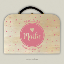 Dit kartonnen of houten koffertje in trendy kleuren is een gegarandeerd succes als kraamcadeau. Ook erg leuk als verjaardagscadeau voor bijvoorbeeld de eerste verjaardag ! :-)