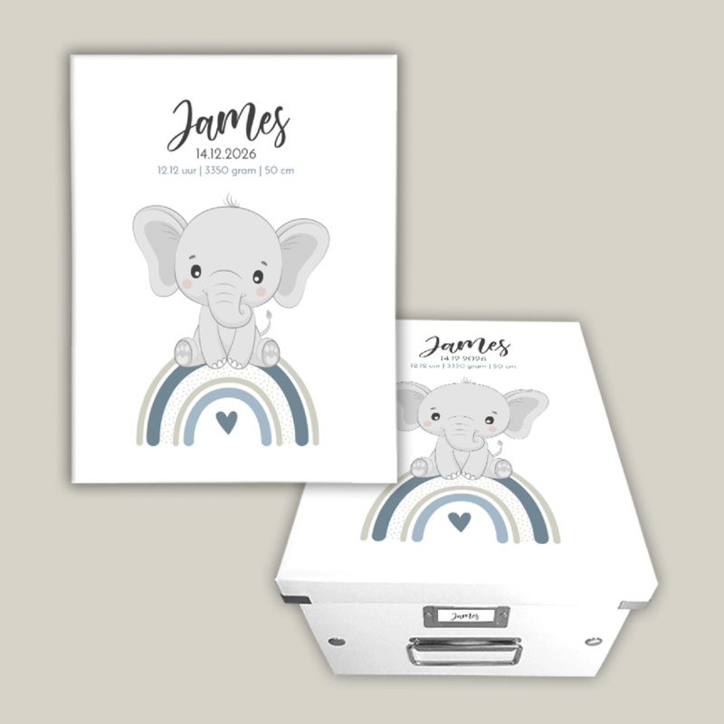 Artikelnummer: Dk065 OverzichtGeboorte bewaardoos Olifantje op regenboog
