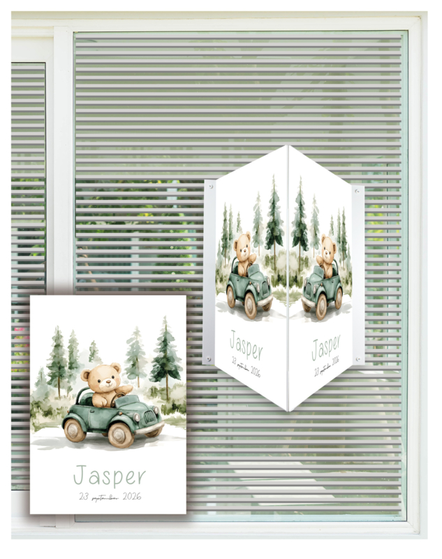 Artikelnummer: S112 OverzichtGeboortestoeltje met naam | bosdieren